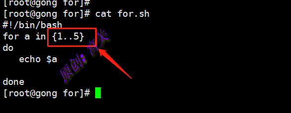 上图中的do done之间的内容称为循环体,一共执行了5次,打印5个结果。
