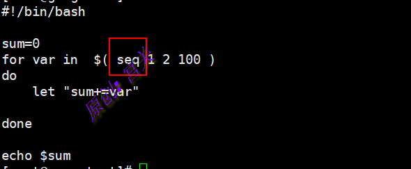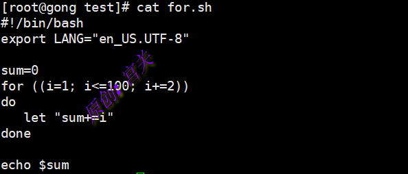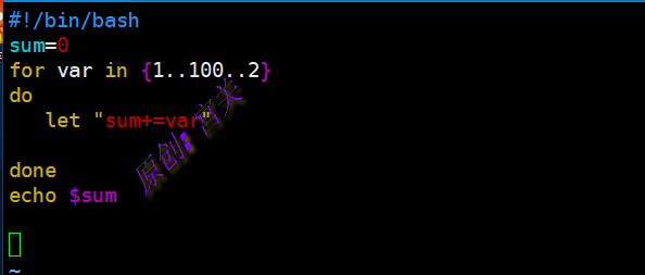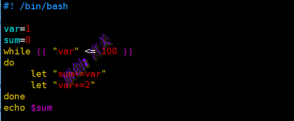 shell中还支持按照一定的数值递增的方式进行循环,计算1到100之间所有奇数的和,如图:var的值每次递增初始为1,每次加2
