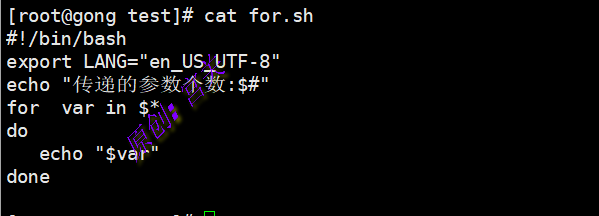 for 循环可以接受从命令行传递参数,$#表示参数个数,$*表示所有参数,执行的时候,sh for.sh 1 2 3 4 5即可,例如: