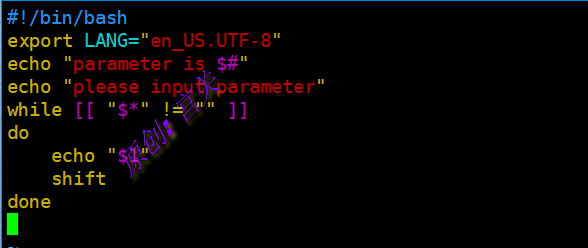 在此模式下,while循环通常需要与shift一起使用,shift使位置变量下移一位($2代替$1,$3代替$2), 加了shift后,下一轮循环将打印$2,以此类推,如图: