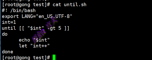 until循环与while循环类似,但是有一点区别就是,只有当表达式退出状态不为0的时候,循环体执行,如果表达式退出状态为0,循环结束