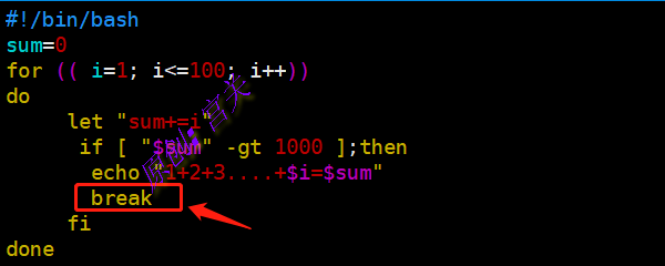 break循环控制符可以用于for循环、while循环以及until循环中,用于强行退出循环,忽略循环语句中其他条件限制。