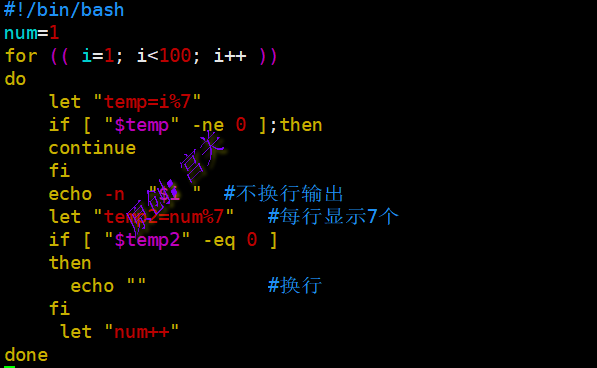 continue循环控制符也可以用于for循环 、while循环以及until循环中,用于让脚本跳过后面的循环,继续执行下一次循环。