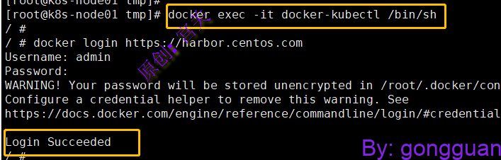 推送镜像之前首先需要先登录harbor服务器,执行命令docker login https://harbor.centos.com,如图: