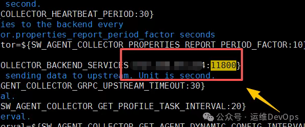 编辑config目录下的agent.config文件,修改oap的服务IP和端口,如图: