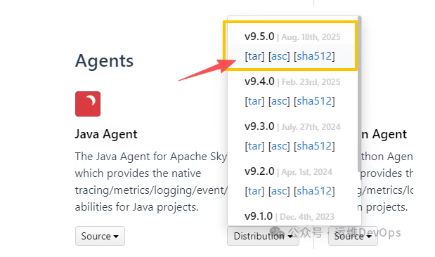 6、部署agent,同样的下载页面,这里以Java agent为例子,如图: