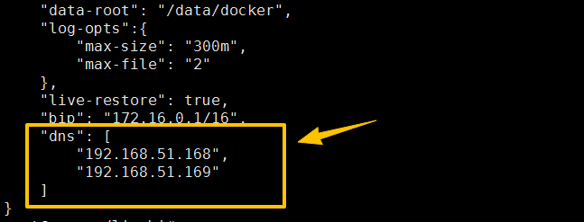 在构建镜像之前,先检查下daemon.json,修改为内部DNS,如图: