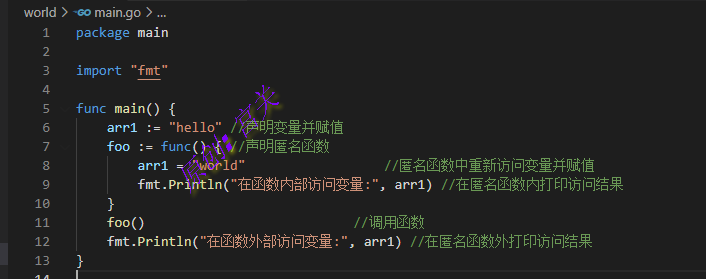 注意:匿名函数func()要写在主函数main()中,否则会报错