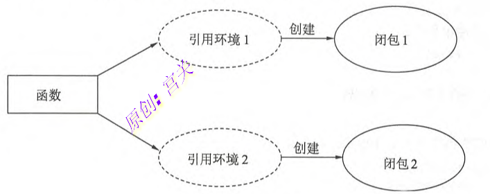 同一个函数与不同引用环境组合,可以形成不同的实例,如图: