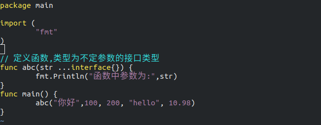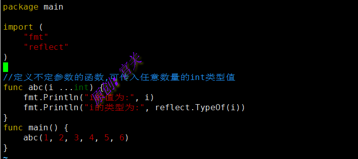 下面例子中表示定义函数,参数为不定参数的int类型,如图:
