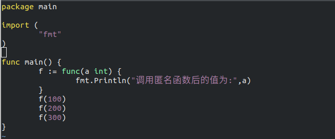 当函数的参数为匿名函数时,此时的匿名函数不需要写{},比如上面的f func(int) 即可