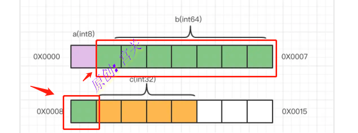 如果没有内存对齐,那么结构体中各个字段在内存中是紧密排列的,例如结构体def内存布局如下: