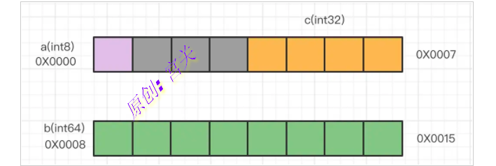 调整顺序后的结构体为abc,abc的内存布局如图: