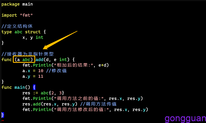 - 调用b 的Add()方法。同样也是非指针接收器, 结果直接通过Add()方法返回