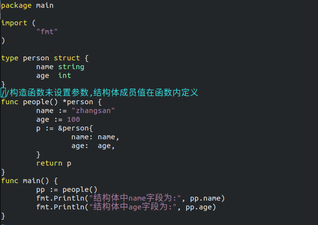 例如:下面例子通过new实例化结构体并赋值,如图: