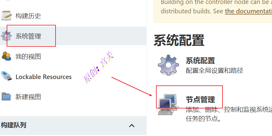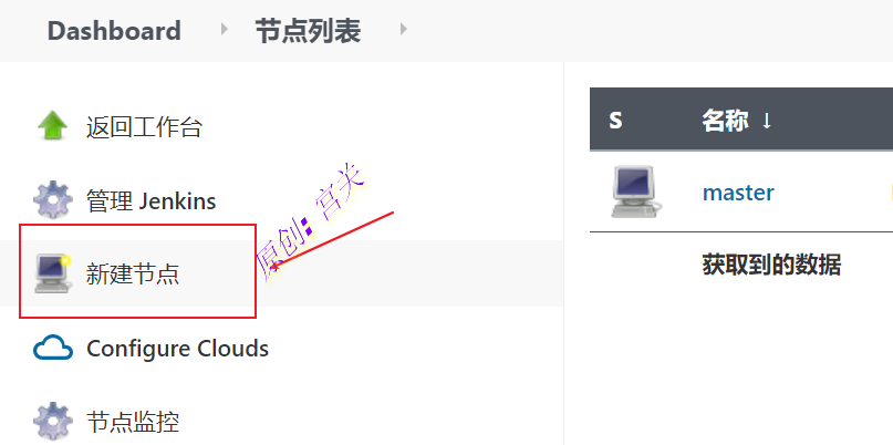 4、打开master节点的Jenkins页面,点击左侧的系统管理-节点管理,如图: