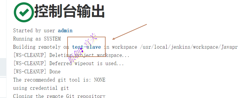 在构建任务的时候,可以发现已经通过test-slave来执行构建了,如图: