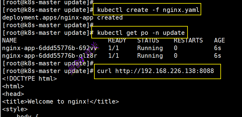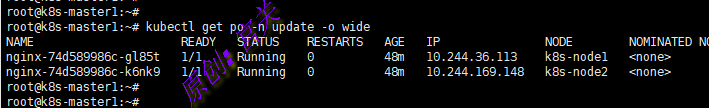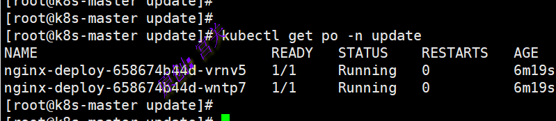 1、在命名空间update上创建2个副本的nginx应用,如图: