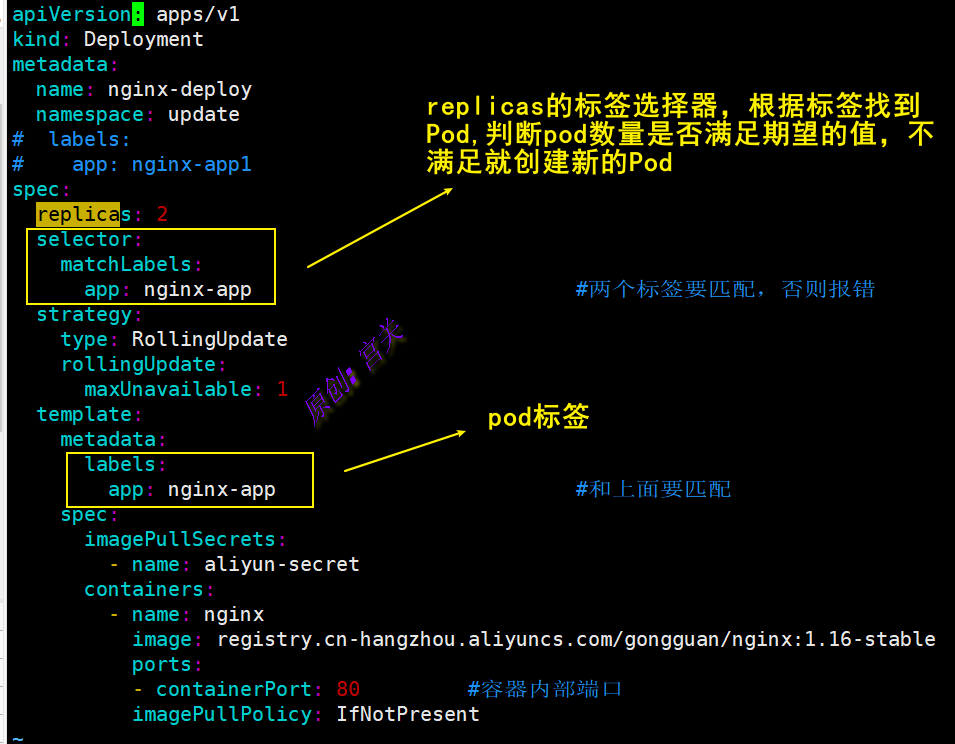 app: nginx           #pod标签,标签选择器就是选择这个标签