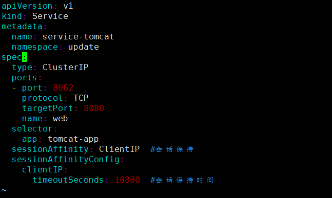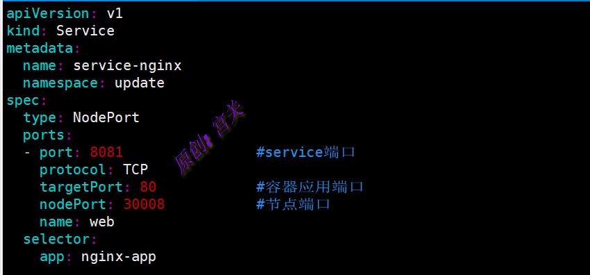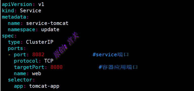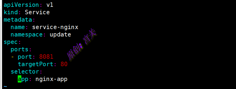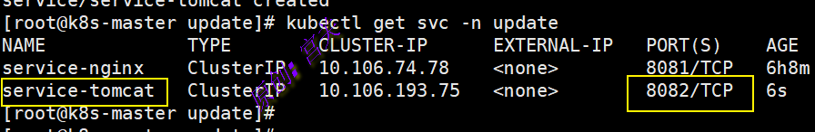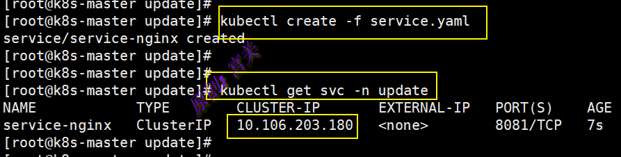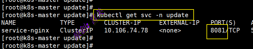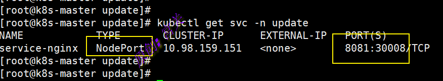 2、在命名空间update中创建service,文件内容如下: