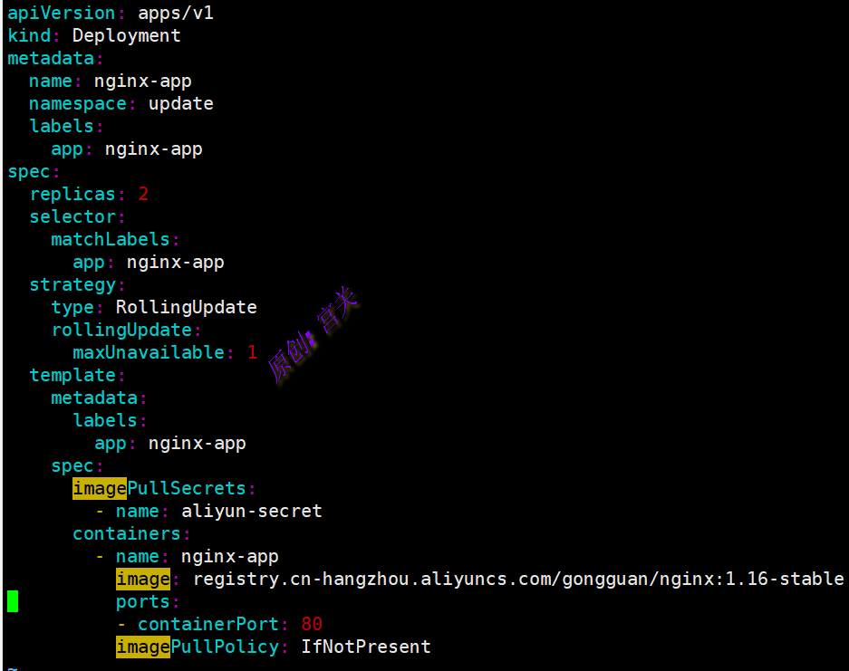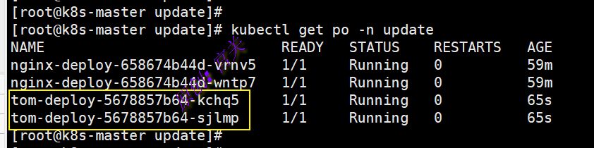 1、在命名空间update中创建一个Pod,yaml文件内容如下: