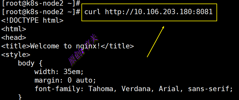 接下来通过service的IP和端口在任意节点即可访问服务,如图: