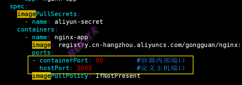 在Pod资源定义文件中定义端口,如图: