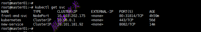 查看当前默认命名空间中的service信息,如图: