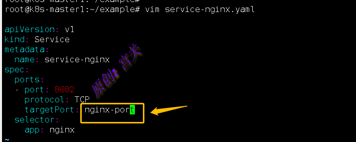 (4)、定义service文件,并在targetPort中指定目标端口名,如图: