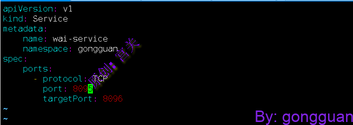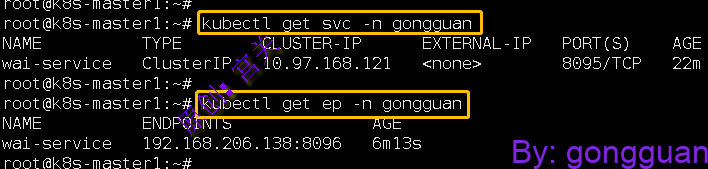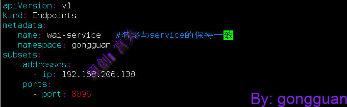 2、在命名空间gongguan中定义service,不指定labelselector,如图: