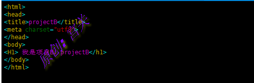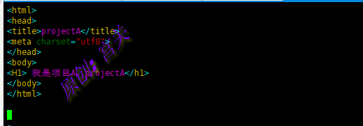 在/usr/share/tomcat/webapps/目录下新建项目文件夹projectA和projectB,并在内部创建文件index.html,内容分别为: