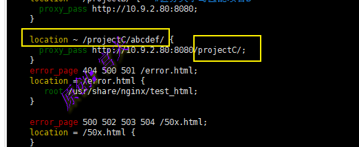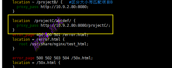 - 带正则的url匹配,如上图中 ~ /projectC/