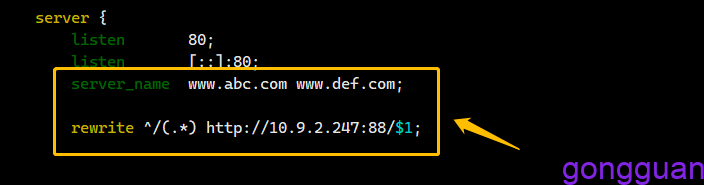 rewrite /abc/(def) https://example.comf/$1 #匹配路径为https://example.com/def
