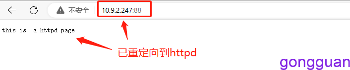 此时通过浏览器访问http://10.9.2.247,可以看到已经跳转到httpd,如图: