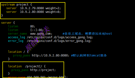 负载均衡通过upstream模块(自带)来实现,模块中配置多台服务器,并根据一定的策略实现负载均衡,upsteam一般可以有两种方式配置: