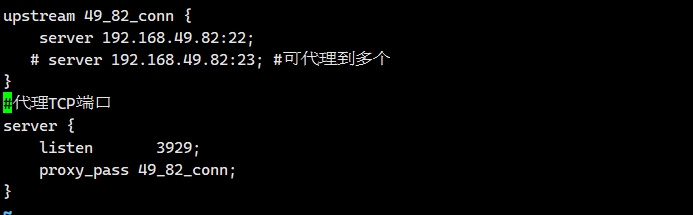 2、编辑streamtcp.conf,监听本机的3929端口并代理到192.168.49.82机器上的22端口,如图: