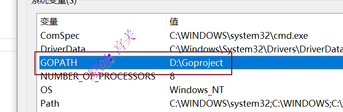 本例子中,在D盘下创建目录Goproject作为GOPATH路径,并配置环境变量(如果不存在),如图:
