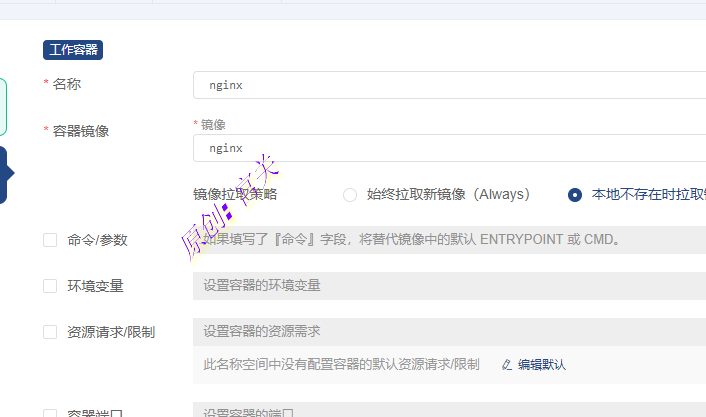 注意:如果镜像从私有仓库拉取,需要配置ImagePullSecret,如图: