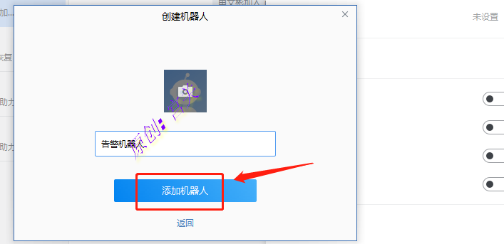 3、输入机器人的名字后,点击添加机器人,如图: