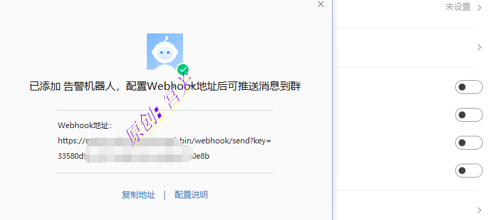4、添加后,可以看到Webhook地址,key对应的值即为Token,如图: