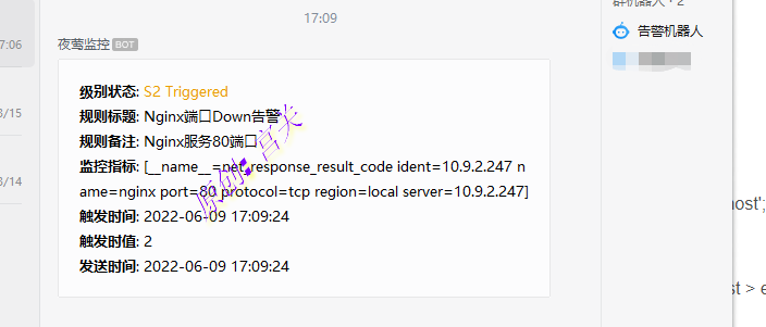 6、配置好策略触发告警后,可以看到企业微信告警内容如下: