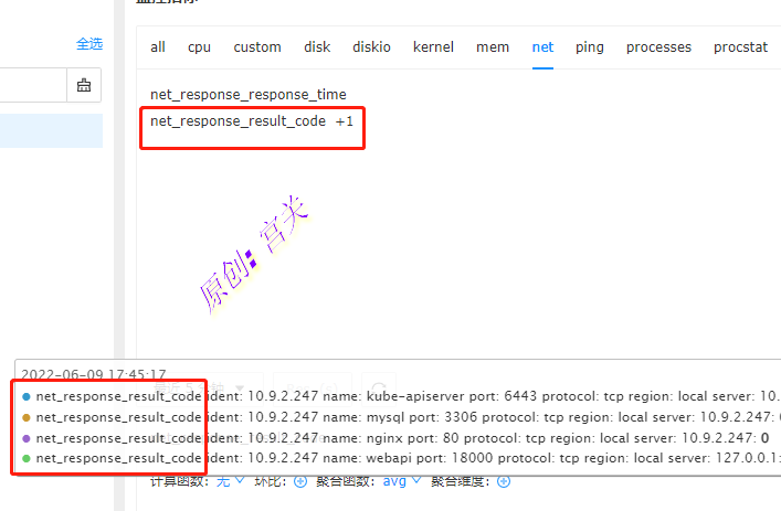 1、首先在快捷看图位置,找到指标名称,本例以查看nginx的端口指标net_response为例,如图: