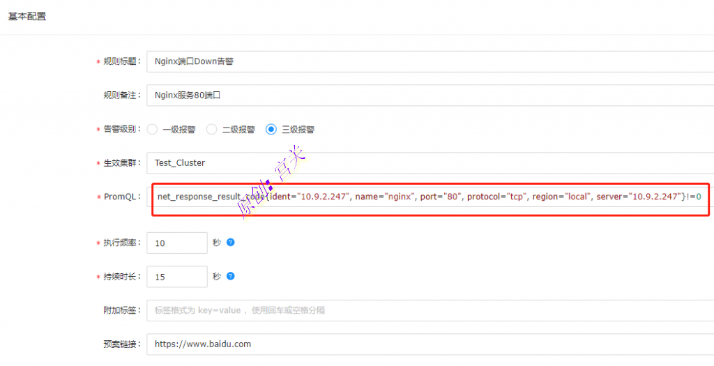 1、在主界面点击告警规则–新建告警规则,基本配置位置如图: