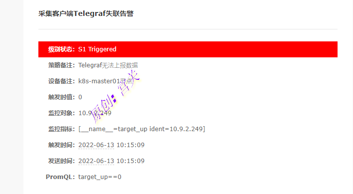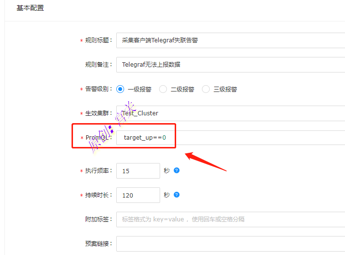 注:target_up指标为所有机器都具备,因此告警策略是针对全局性的