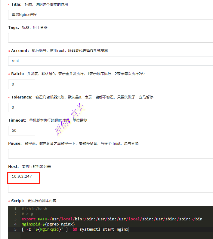 - Host字段的值一定要与本机安装的telegraf的hostname设置的一直,IP或者主机名都可,不一致执行命令会报错