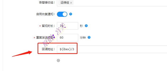 3、在告警策略里的回调地址位置(最下面),配置如下: