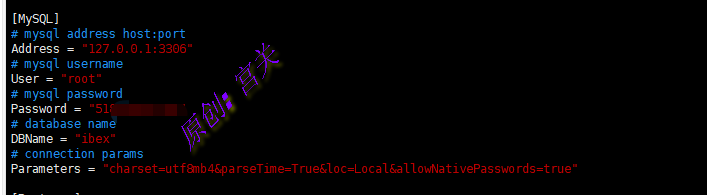 4、修改etc目录下的server.conf,修改mysql地址和密码,如图: