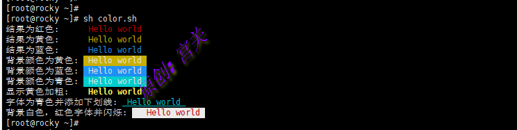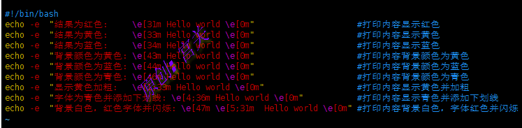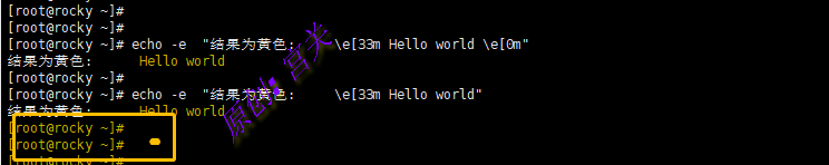注:最后一定要加\e[0m,如果不加,那么命令终端也会显示对应颜色,如图: