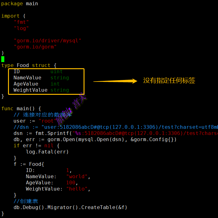 注:如果不是通过gorm创建的表,那么结构体的字段名要么与表名对应,要么就要在gorm中指定表列名,否则会报错,使用gorm Migrator创建表时 ,不会创建被忽略的字段
