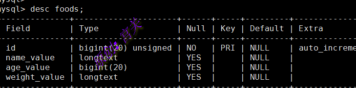 从上图看出,在结构体标签中设置列名以及type后,对应的表结构就是设置之后的,comment为注释字段,可写可不写